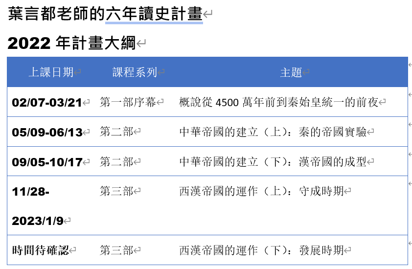 《旅讀》雜誌特邀葉言都老師規劃【葉言都老師的六年讀史計畫】,從西元前221年到西元後1912年,包括第一部序幕概說,歷時六年,需要一點毅力與耐心,是2022年後對所處環境的理解與自我提升,鑒往知來,學習永遠不間斷,歡迎你一起加入!